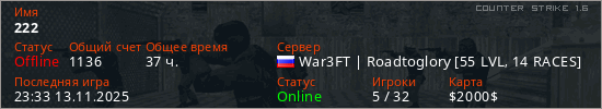 Играет на Counter Strike 1.6 сервере. Страна: РоссияПервый раз замечен 19:05 15.01.2021