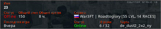 Последний раз был в сети Вчера Игрок с таким ником замечен на 55 серверах