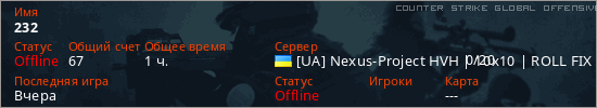 Играет на Counter Strike Global Offensive сервере. Страна: УкраинаПервый раз замечен 00:39 17.01.2026