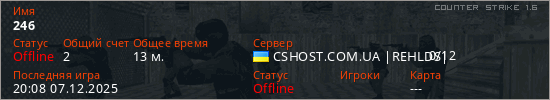 Играет на Counter Strike 1.6 сервере. Страна: УкраинаПервый раз замечен 19:40 07.12.2025