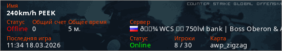Играет на Counter Strike Global Offensive сервере. Страна: РоссияПервый раз замечен 11:32 18.03.2026