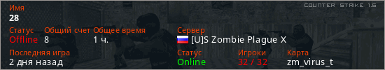 Последний раз был в сети 23 часа назад Игрок с таким ником замечен на 29 серверах