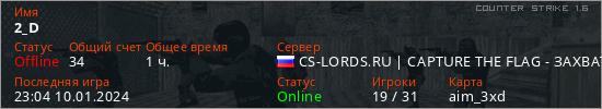 Играет на Counter Strike 1.6 сервере. Страна: РоссияПервый раз замечен 17:11 08.05.2022