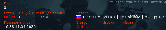 Играет на Counter Strike Global Offensive сервере. Страна: РоссияПервый раз замечен 17:12 01.04.2026