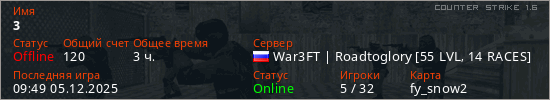 Играет на Counter Strike 1.6 сервере. Страна: РоссияПервый раз замечен 19:56 05.02.2021