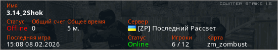 Играет на Counter Strike 1.6 сервере. Страна: УкраинаПервый раз замечен 15:04 08.02.2026