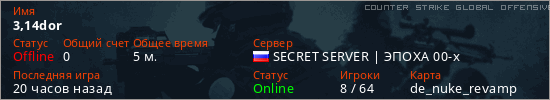 Играет на Counter Strike Global Offensive сервере. Страна: РоссияПервый раз замечен 18:48 20.01.2026