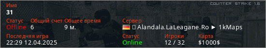 Последний раз был в сети 22:29 12.04.2025 Игрок с таким ником замечен на 33 серверах