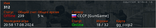 Играет на Counter Strike 1.6 сервере. Страна: РоссияПервый раз замечен 15:23 20.09.2023
