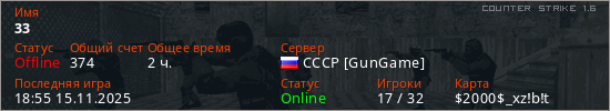 Играет на Counter Strike 1.6 сервере. Страна: РоссияПервый раз замечен 19:17 06.10.2023