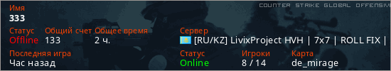 Последний раз был в сети Час назад Игрок с таким ником замечен на 56 серверах