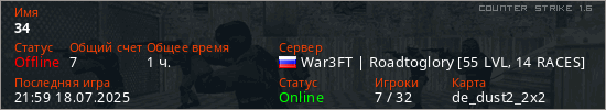 Играет на Counter Strike 1.6 сервере. Страна: РоссияПервый раз замечен 22:58 04.06.2021