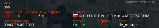 Играет на Counter Strike 1.6 сервере. Страна: РоссияПервый раз замечен 09:00 28.09.2023