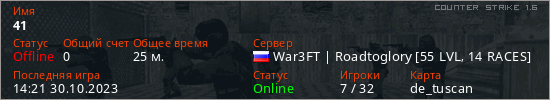 Играет на Counter Strike 1.6 сервере. Страна: РоссияПервый раз замечен 11:11 19.04.2023