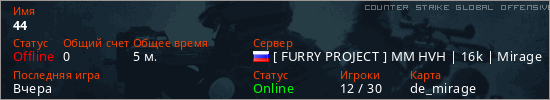 Последний раз был в сети Вчера Игрок с таким ником замечен на 45 серверах