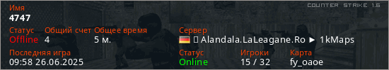 Играет на Counter Strike 1.6 сервере. Страна: ГерманияПервый раз замечен 09:19 26.06.2025
