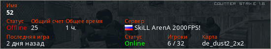 Последний раз был в сети 2 дня назад Игрок с таким ником замечен на 51 сервере