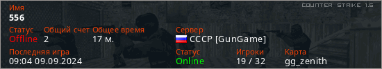 Играет на Counter Strike 1.6 сервере. Страна: РоссияПервый раз замечен 15:00 01.11.2023