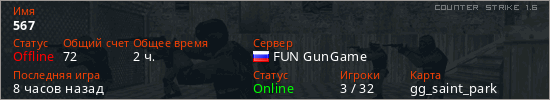 Играет на Counter Strike 1.6 сервере. Страна: РоссияПервый раз замечен 15:18 10.11.2025