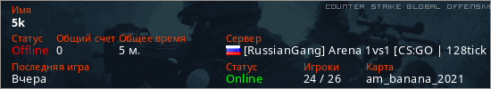 Играет на Counter Strike Global Offensive сервере. Страна: РоссияПервый раз замечен 05:11 09.03.2026