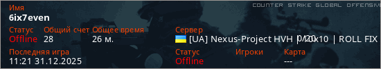 Играет на Counter Strike Global Offensive сервере. Страна: УкраинаПервый раз замечен 15:34 29.12.2025