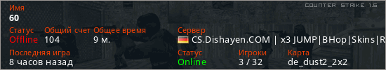Последний раз был в сети 6 часов назад Игрок с таким ником замечен на 14 серверах