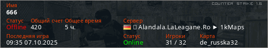 Последний раз был в сети 09:35 07.10.2025 Игрок с таким ником замечен на 72 серверах
