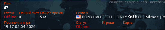 Играет на Counter Strike Global Offensive сервере. Страна: СШАПервый раз замечен 19:07 05.04.2026
