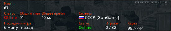 Играет на Counter Strike 1.6 сервере. Страна: РоссияПервый раз замечен 15:47 09.07.2025
