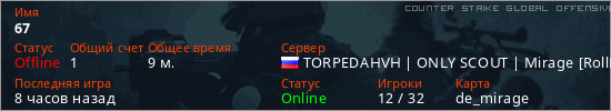 Играет на Counter Strike Global Offensive сервере. Страна: РоссияПервый раз замечен 09:29 13.01.2026