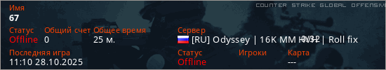 Играет на Counter Strike Global Offensive сервере. Страна: РоссияПервый раз замечен 07:12 02.10.2025