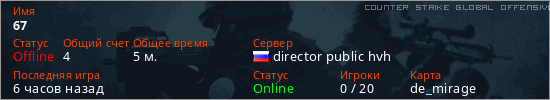 Последний раз был в сети 5 часов назад Игрок с таким ником замечен на 68 серверах