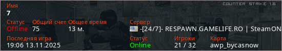 Играет на Counter Strike 1.6 сервере. Страна: СШАПервый раз замечен 09:04 07.02.2025
