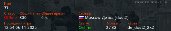 Последний раз был в сети 12:54 06.11.2025 Игрок с таким ником замечен на 48 серверах