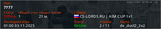 Играет на Counter Strike 1.6 сервере. Страна: РоссияПервый раз замечен 22:44 20.11.2024