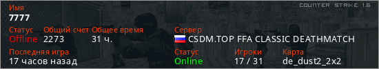 Последний раз был в сети 15 часов назад Игрок с таким ником замечен на 40 серверах