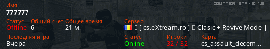 Последний раз был в сети Вчера Игрок с таким ником замечен на 27 серверах