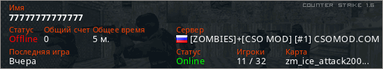 Последний раз был в сети Вчера Игрок с таким ником замечен на 23 серверах