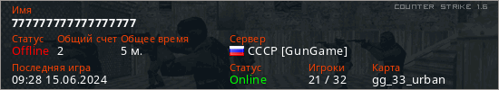 Играет на Counter Strike 1.6 сервере. Страна: РоссияПервый раз замечен 09:26 15.06.2024
