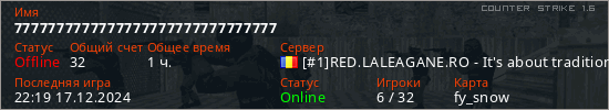 Играет на Counter Strike 1.6 сервере. Страна: РумынияПервый раз замечен 22:01 18.11.2024