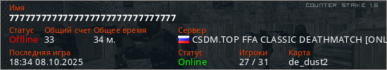 Последний раз был в сети 18:34 08.10.2025 Игрок с таким ником замечен на 30 серверах