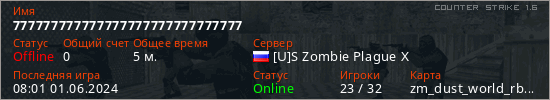 Играет на Counter Strike 1.6 сервере. Страна: РоссияПервый раз замечен 07:53 01.06.2024