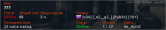 Последний раз был в сети 20 часов назад Игрок с таким ником замечен на 70 серверах