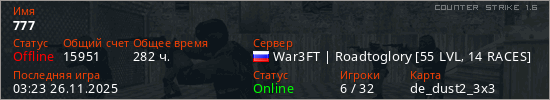 Последний раз был в сети 03:23 26.11.2025 Игрок с таким ником замечен на 70 серверах