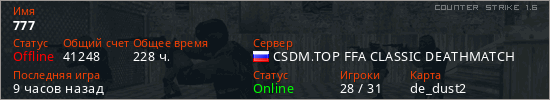 Играет на Counter Strike 1.6 сервере. Страна: РоссияПервый раз замечен 01:25 11.11.2019