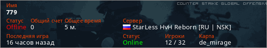 Играет на Counter Strike Global Offensive сервере. Страна: РоссияПервый раз замечен 20:18 06.03.2026