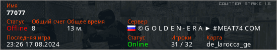 Играет на Counter Strike 1.6 сервере. Страна: РоссияПервый раз замечен 18:25 16.08.2024
