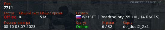 Последний раз был в сети 08:10 03.07.2023 Игрок с таким ником замечен на 3 серверах