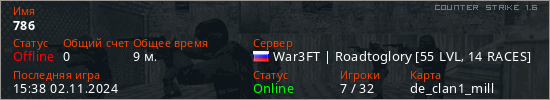 Играет на Counter Strike 1.6 сервере. Страна: РоссияПервый раз замечен 07:47 20.10.2023