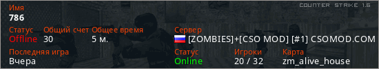 Последний раз был в сети Вчера Игрок с таким ником замечен на 22 серверах